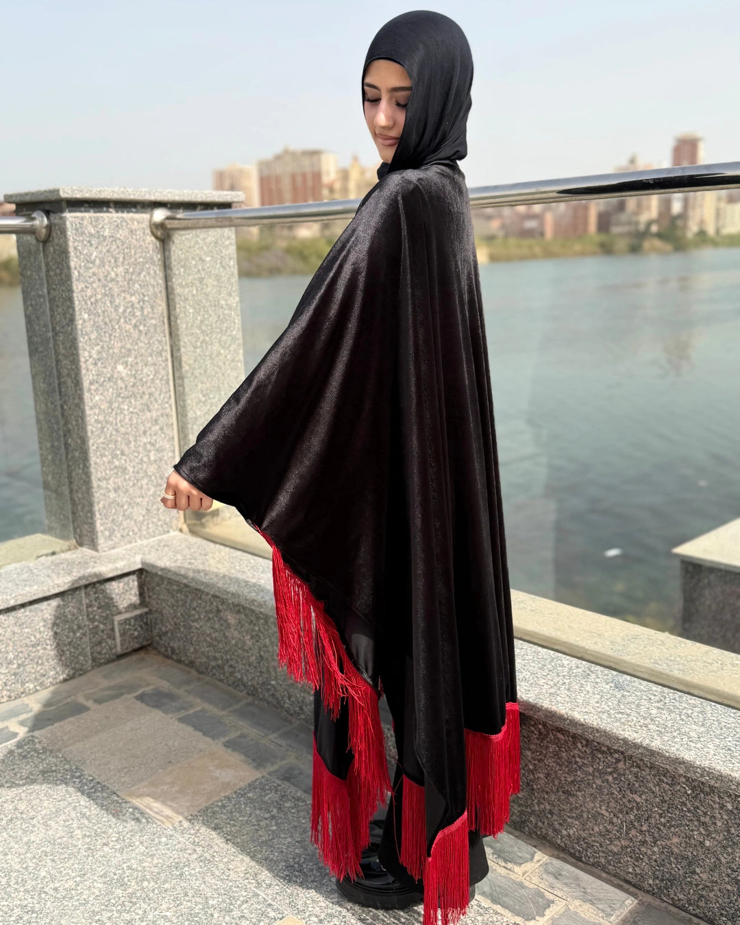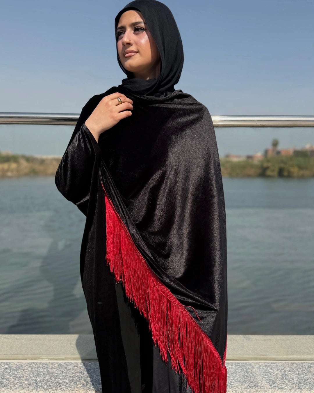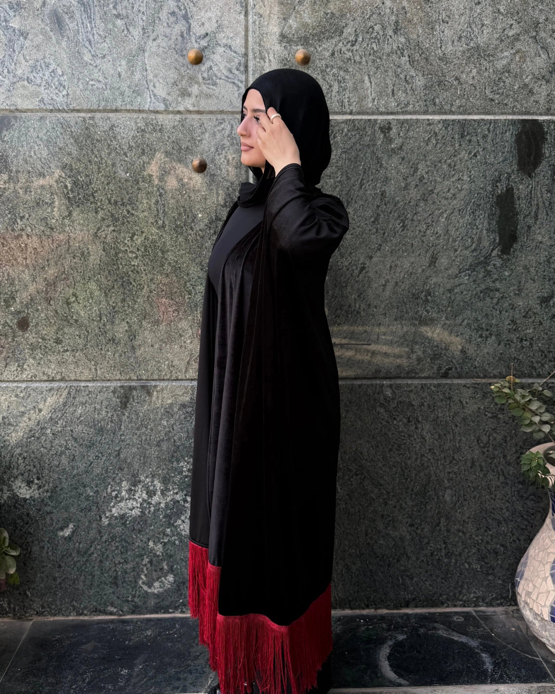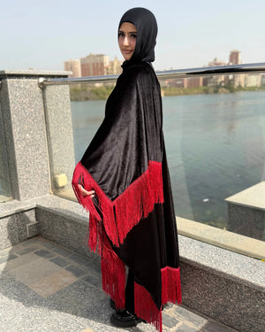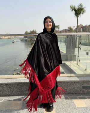 مصنوعة من خامة فيلفيت قطيفة عالية الجودة، مطرزة بشرائط بتدي لمسة فخامة وطابع شرقي مميز